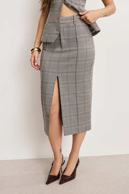 PLAID MIDI SKIRT