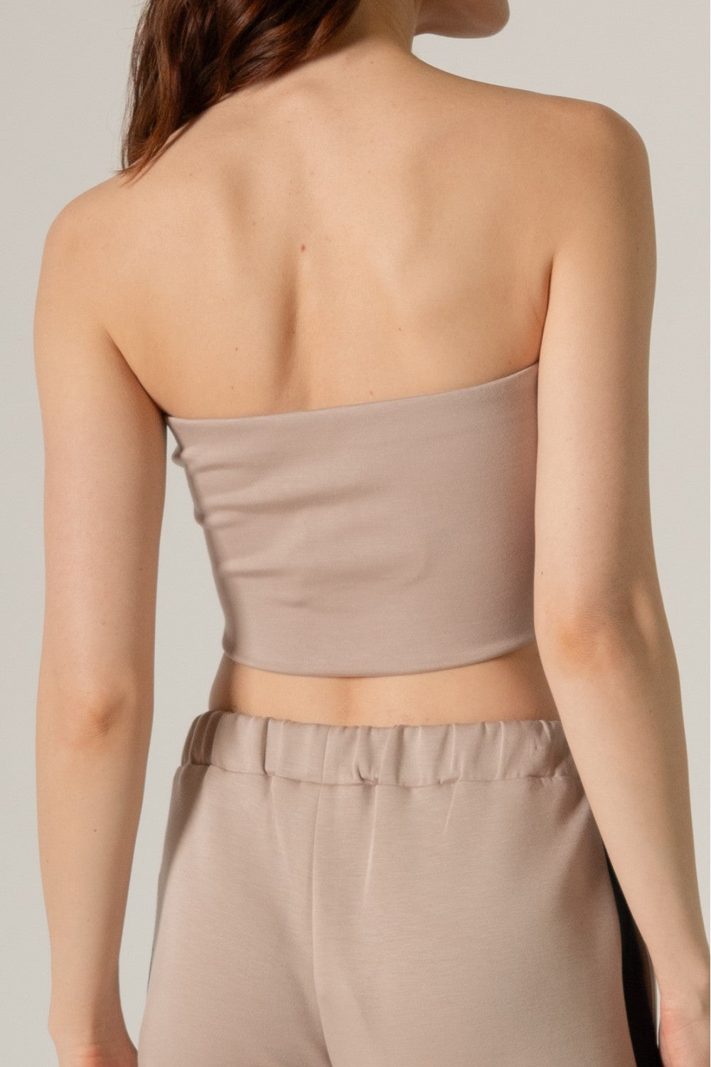Stay comfortable and stylish with our cropped bandeau top. Crafted with stretch material and a thick band for a secure fit, this top is perfect for the summer.