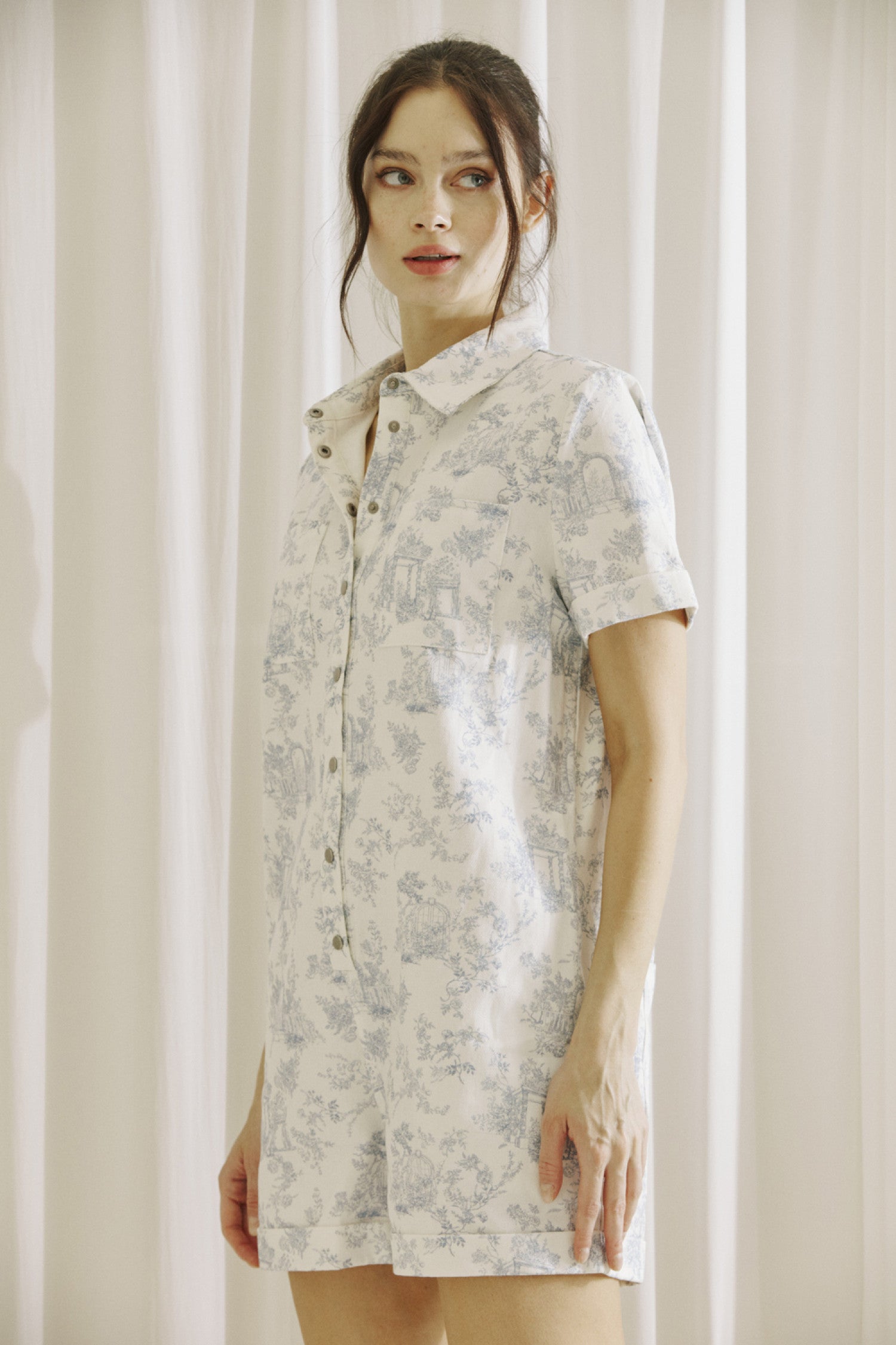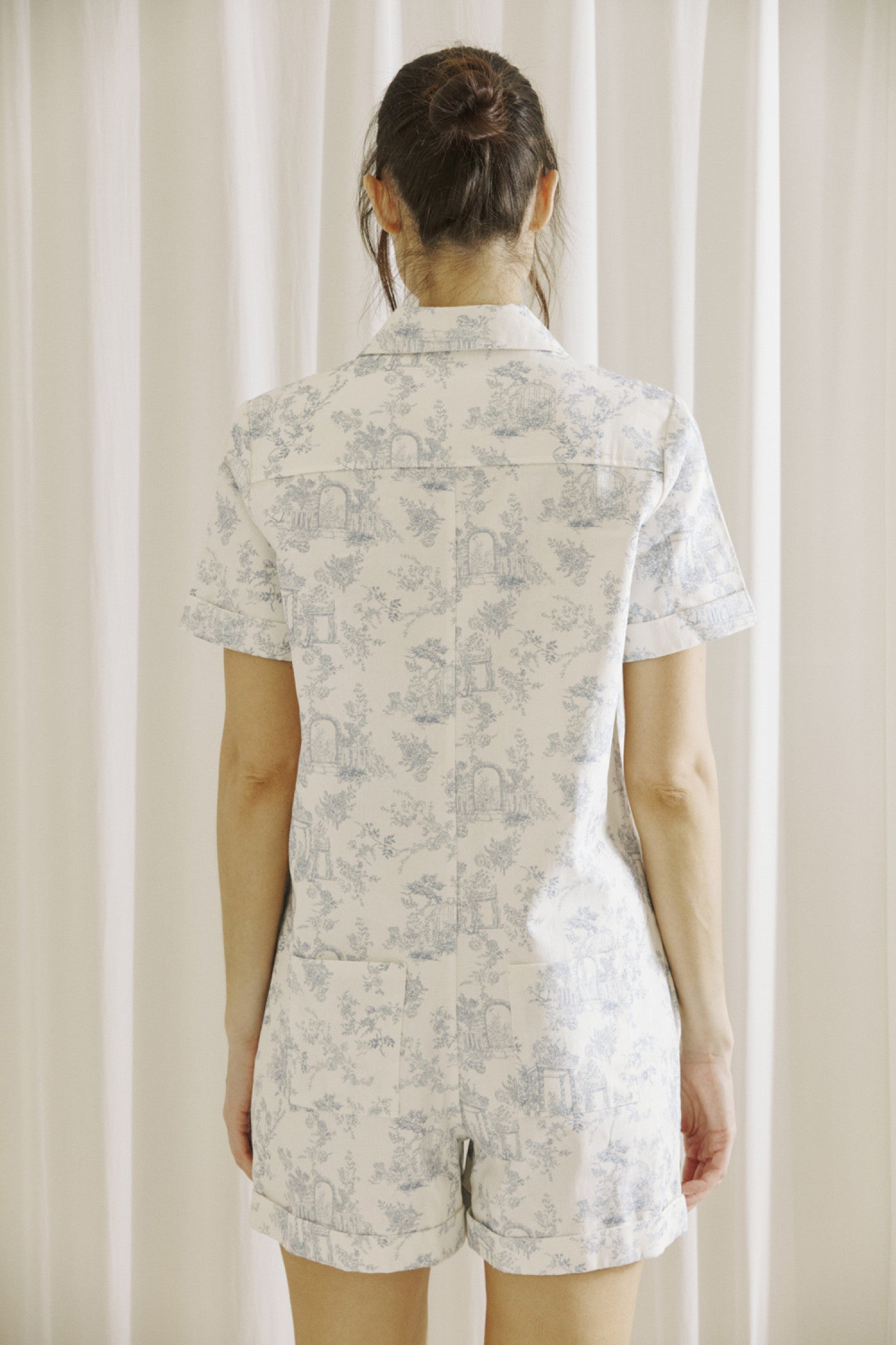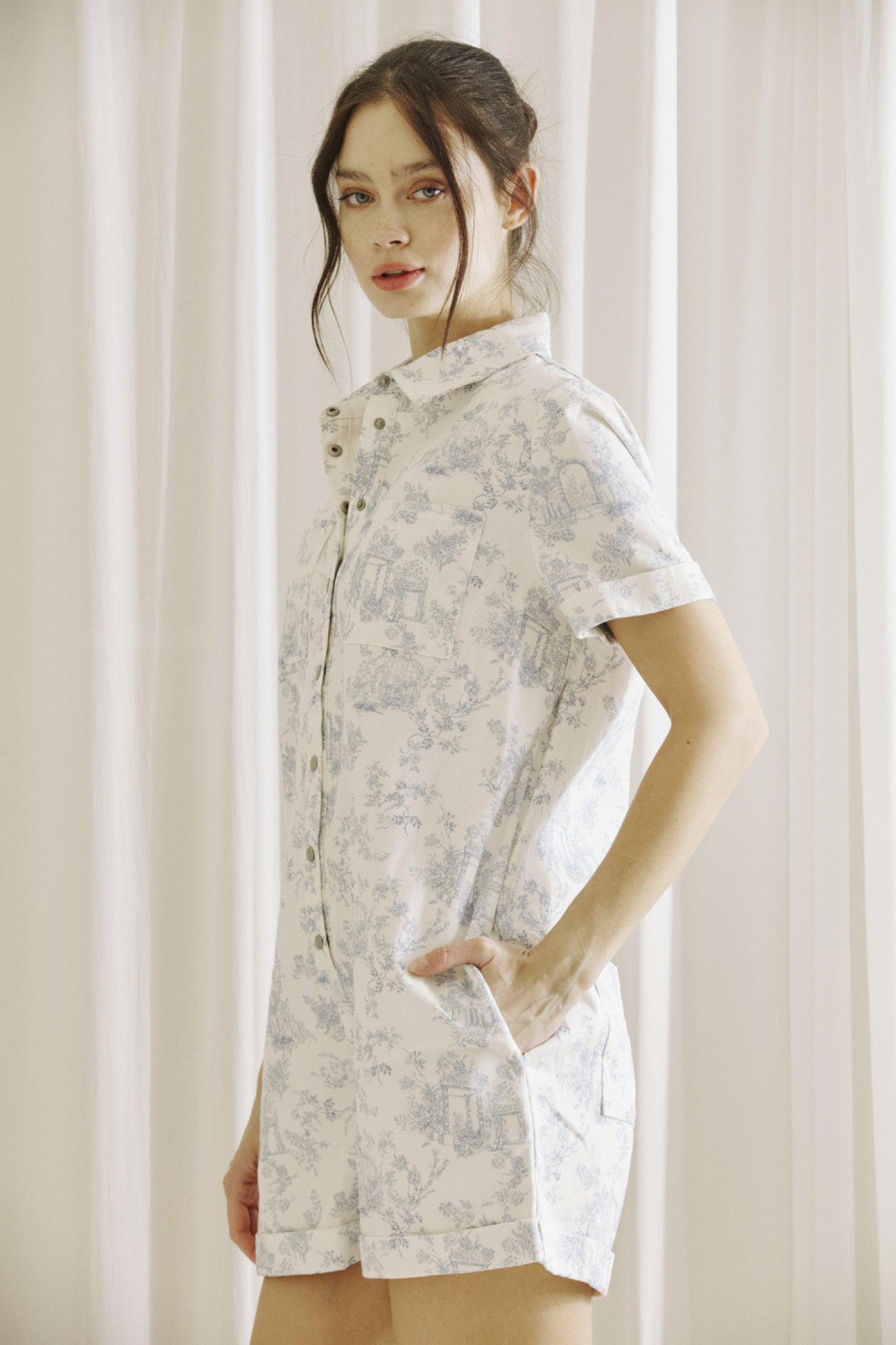 Introducing the Cottage Dreams Romper - the perfect combination of style and comfort. Crafted with a delicate summer print, this short sleeve romper features a collar, front buttons, and pockets for added convenience. The cuffed sleeves and legs add a touch of sophistication to this versatile piece.