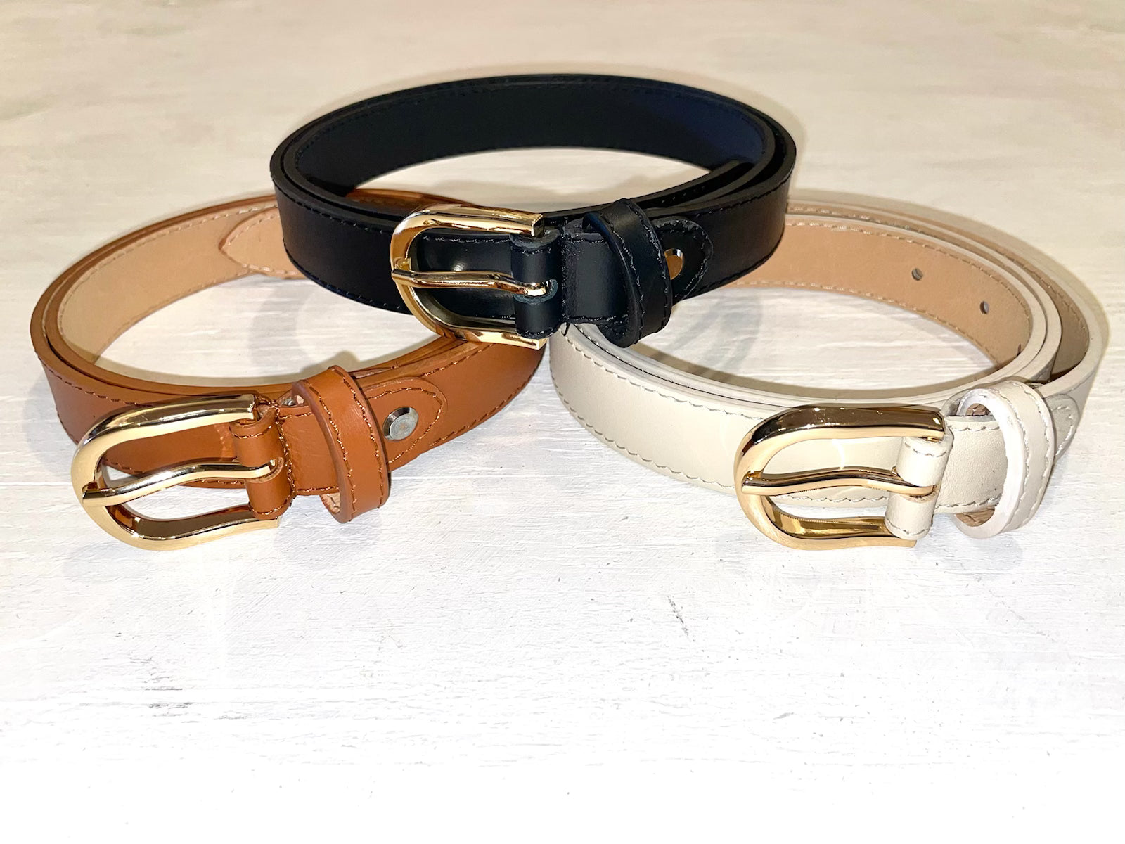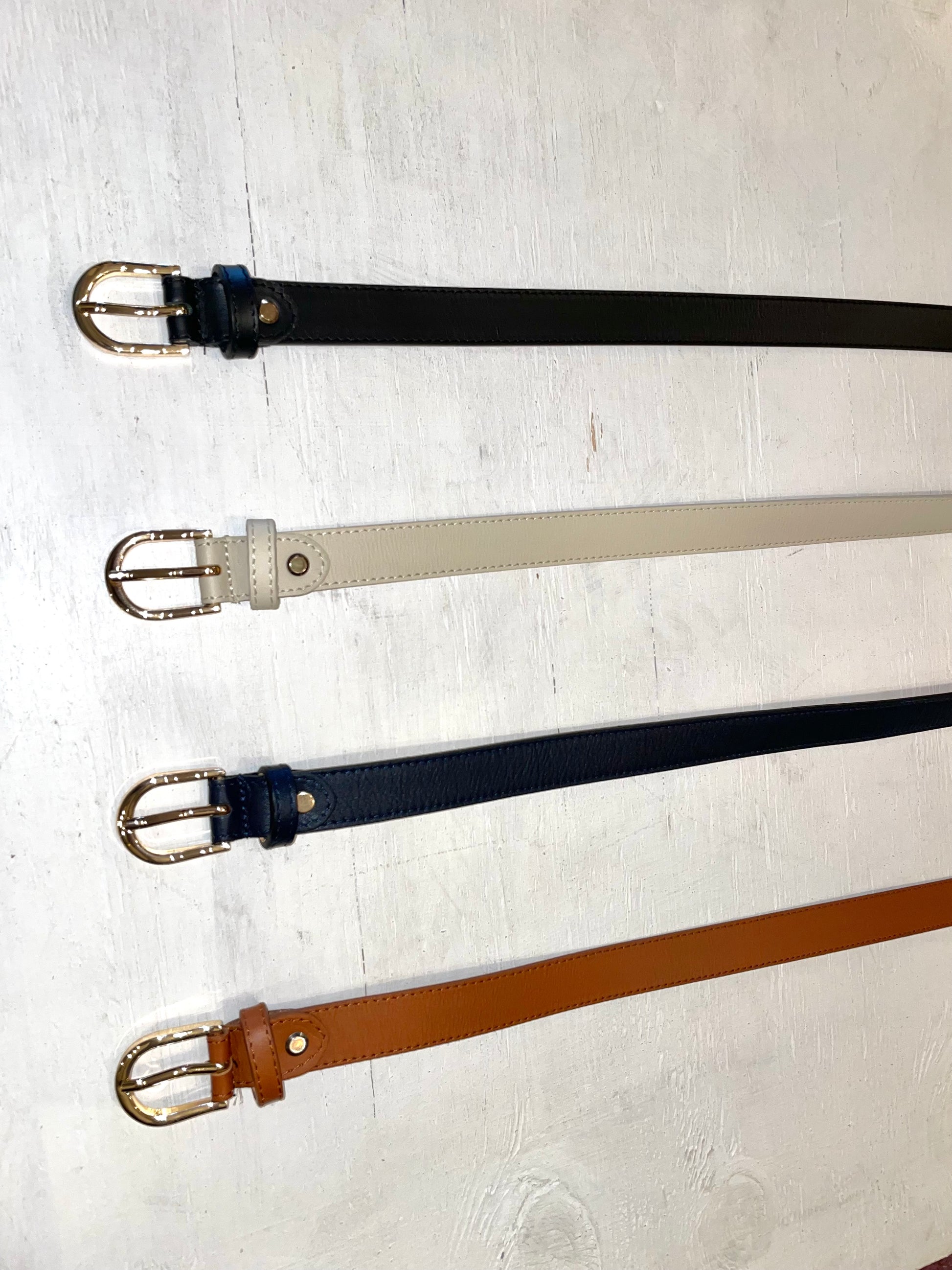 This genuine Italian leather belt features adjustable sizing to fit all comfortably. Its elegant gold twist hardware adds a secure and stylish touch to any outfit.