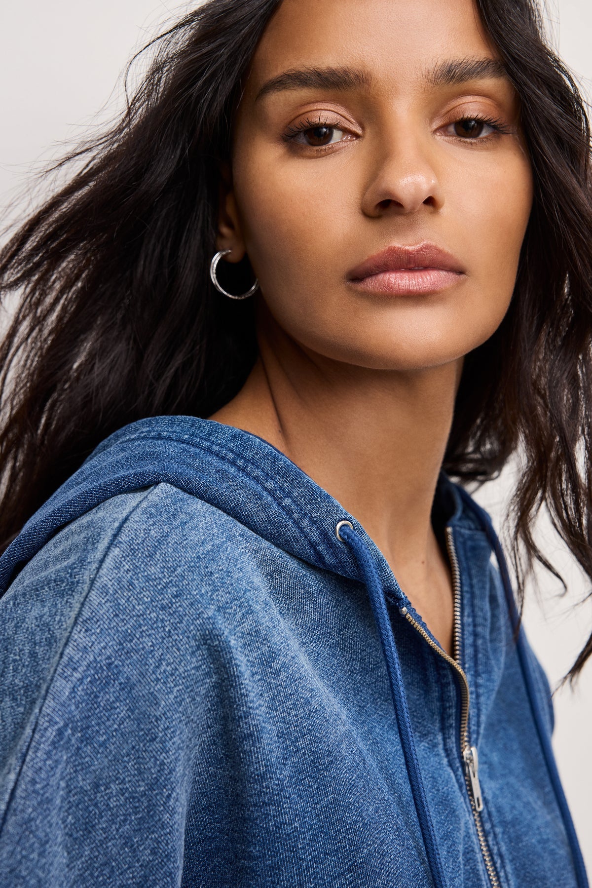 Say hello to your new favorite: the Jeanius Zip Up Hoodie. With its classic cut, front zipper, and roomy pockets to stash your essentials, it’s the perfect blend of style and comfort. It looks like denim but feels like your softest sweats, it’s the best of both worlds – cool and cozy, all in one hoodie.