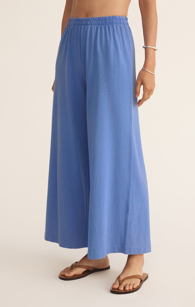 Relaxed cotton jersey flare pants with high-rise elastic waistband. Ankle-length, mineral washed for style. Pairs perfectly with everyday tops for effortless comfort without sacrificing fashion. Machine washable.
