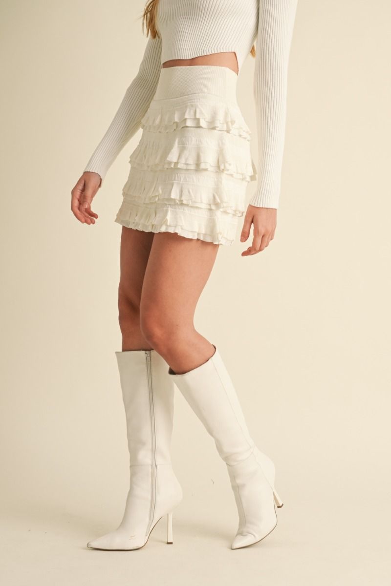 LIGHTWEIGHT KNIT RUFFLED TIERED MINI SKIRT