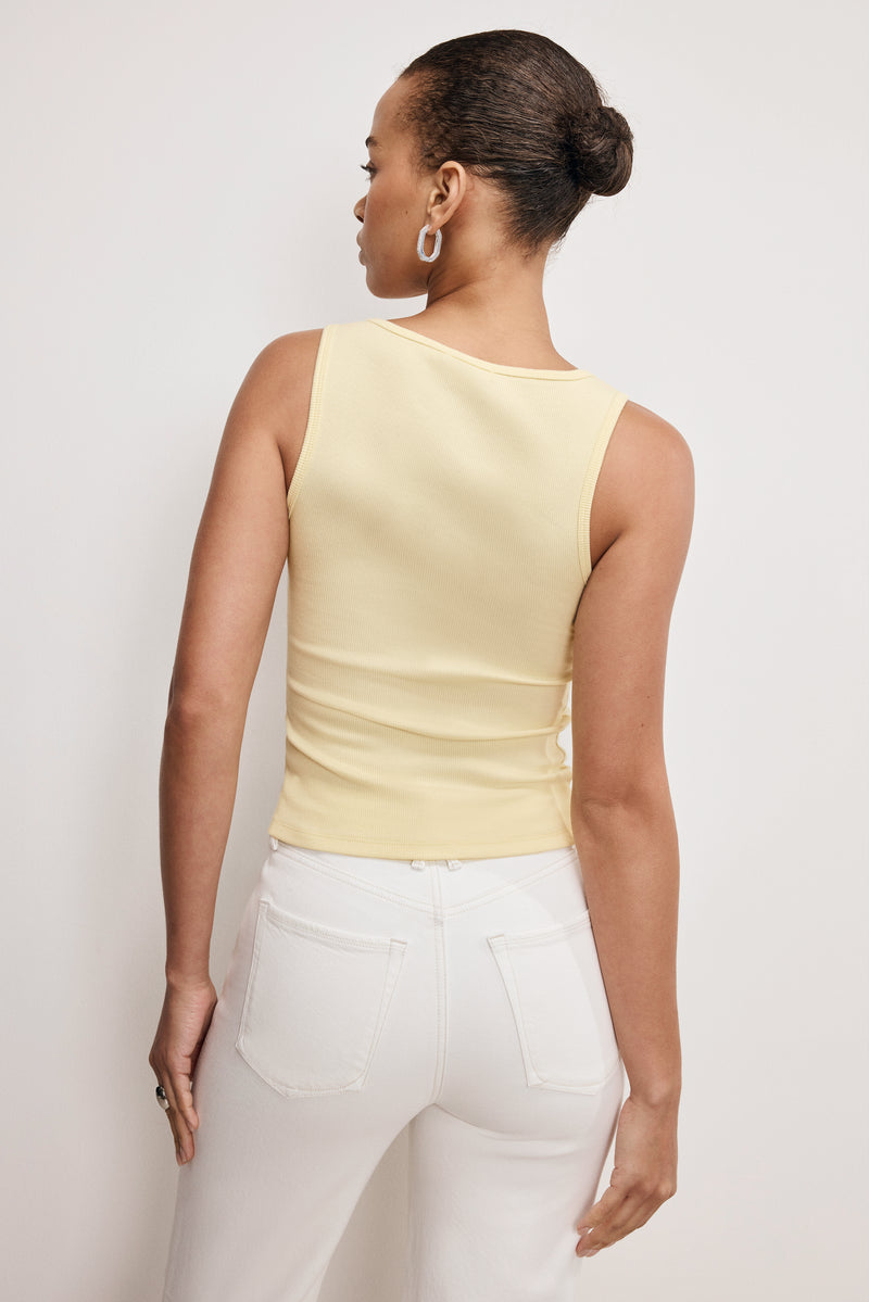 Stay comfortable and look stylish with the Micro Rib Tank Top. Made from compressive and stretchy ribbed cotton, this tank is designed for maximum comfort and a flattering fit. The classic scoop neckline and versatile design make it an essential piece for your everyday wardrobe, whether you're running errands, working out or just lounging at home.