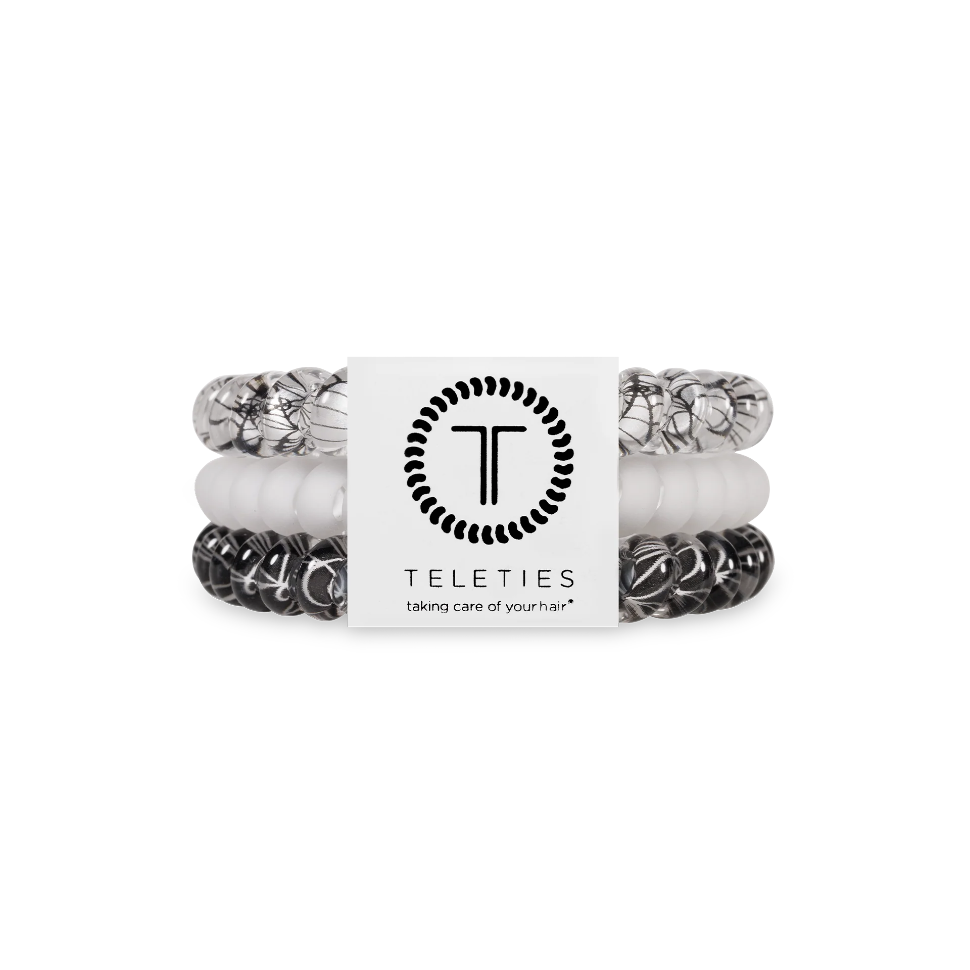TELETIES MEDIUM are the perfect everyday hair ties. Their medium size is perfect for a variety of hairstyles, while their strong grip and water resistance keep your hair in place. TELETIES MEDIUM also reduce hair damage and won't leave a dent in your hair, making them the perfect choice for long-term wear.